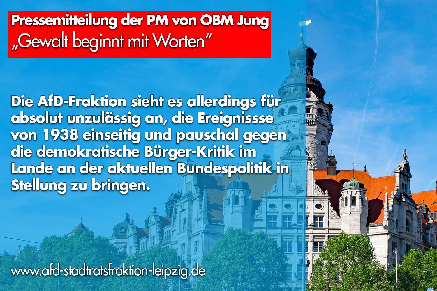im Nachgang zur Presseerklärung von OBM Burkhard Jung: „Jung: Gewalt beginnt mit Worten – Leipzig erinnert mit Banner am Neuen Rathaus an die Pogrome von 1938“ vom 2. November 2018